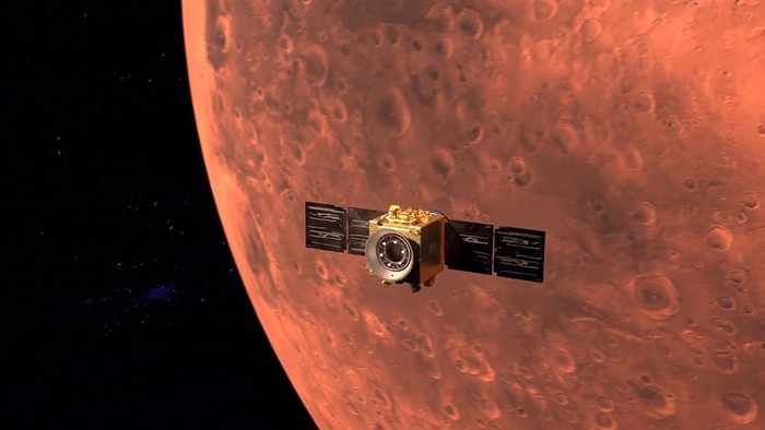 Wahana Hope akan menghabiskan satu tahun Mars, atau setara dengan 687 hari di Bumi, untuk mempelajari dan mengumpulkan data tentang atmosfer Planet Merah. Foto: Twitter
