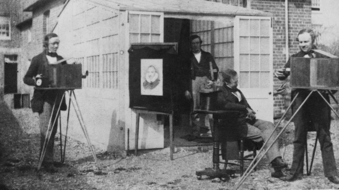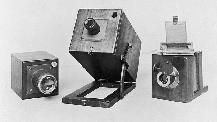 Tiga dari kamera asli yang digunakan oleh Fox Talbot untuk menghasilkan foto menggunakan proses kalotipe tahun 1840-1841. Getty Images/Spencer Arnold Collection Β