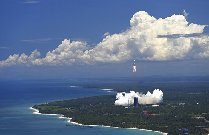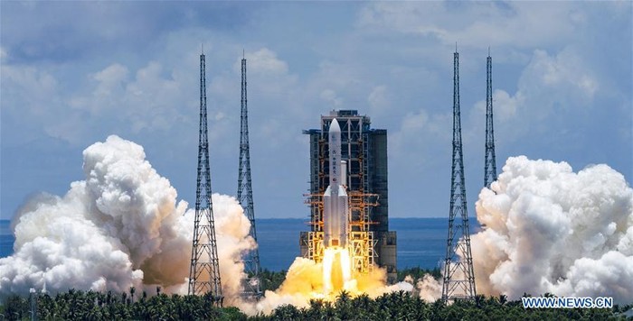 Misi ke Mars bernama Tianwen-1 digawangi oleh China National Space Administration (CNSA). Roket Long March 5 melesatkannya ke antariksa di Wenchang Spacecraft Launch Site pada 23 Juli 2020. Foto: Xinhua
