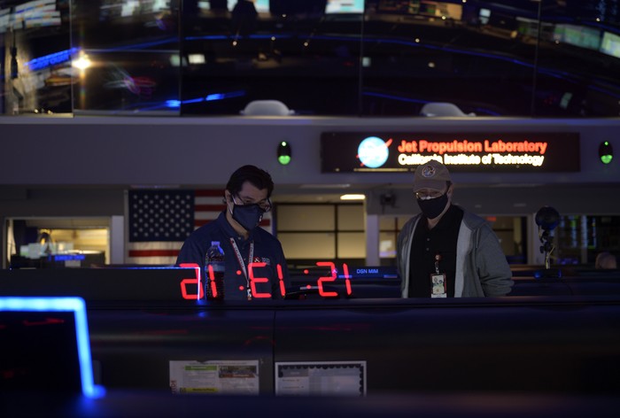 Ketegangan terlihat di wajah tim penjelajah Mars Perseverance NASA saat rover menuju Planet Merah. tim Foto: Bill Ingalls/NASA via AP
