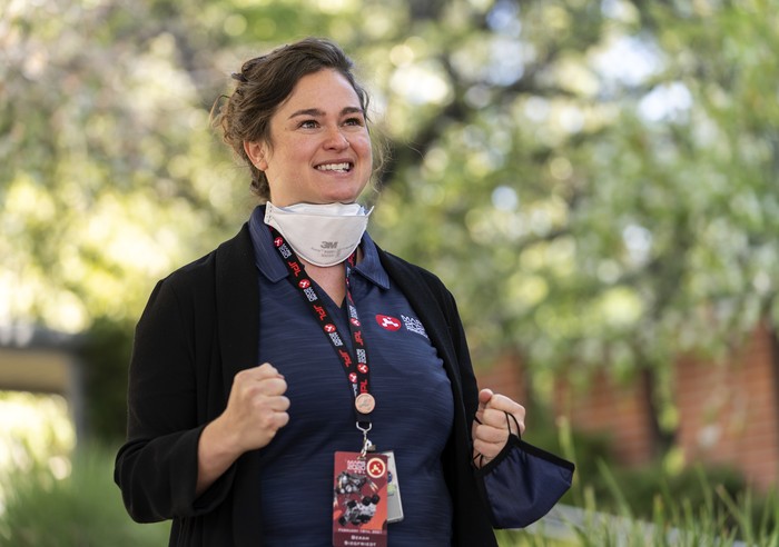 Bekah Siegfriedt, operator misi Mars 2020 menggambarkan proses pendaratan Perseverance sebagai "teror tujuh menit," di mana pengontrol penerbangan hanya dapat menonton tanpa daya apapun. Foto: AP/Damian Dovarganes
