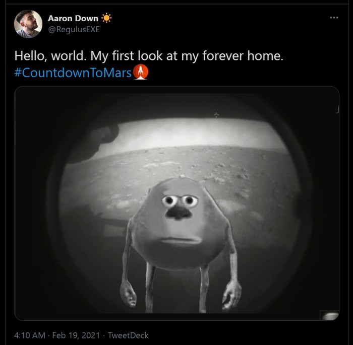 Jakarta - Robot Perseverance milik NASA berhasil mendarat di Planet Mars dan mengirimkan foto pertamanya. Foto ini pun dijadikan bahan meme kocak oleh netizen.