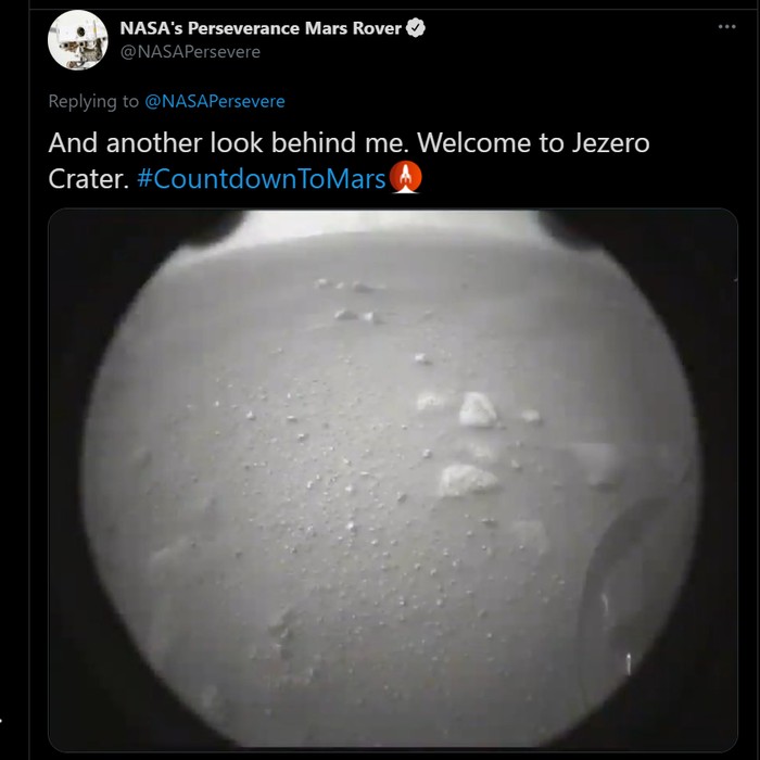 Ini adalah foto kedua yang diambil Perseverance dan dikirimkan ke Bumi. Foto: Screenshot/Twitter