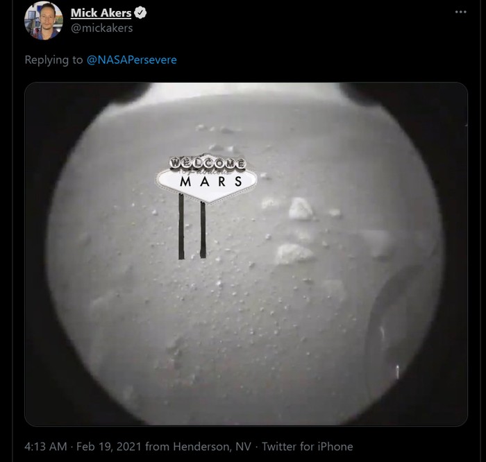 Perseverance disambut dengan reklame neon ala Las Vegas. Foto: Screenshot/Twitter