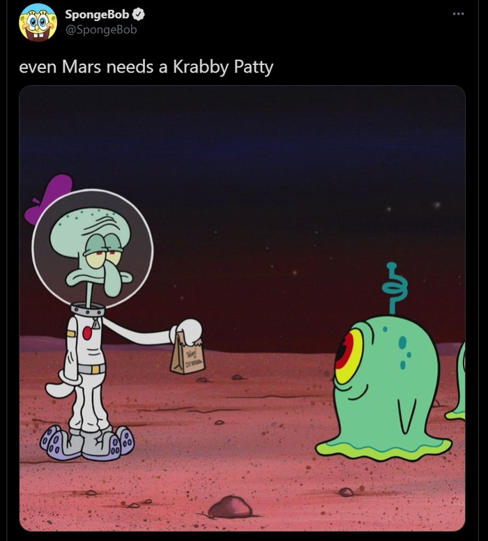 Rupanya Perseverace dipakai Krusty Krab untuk mengirimkan Krabby Patty ke alien Mars. Foto: Screenshot/Twitter