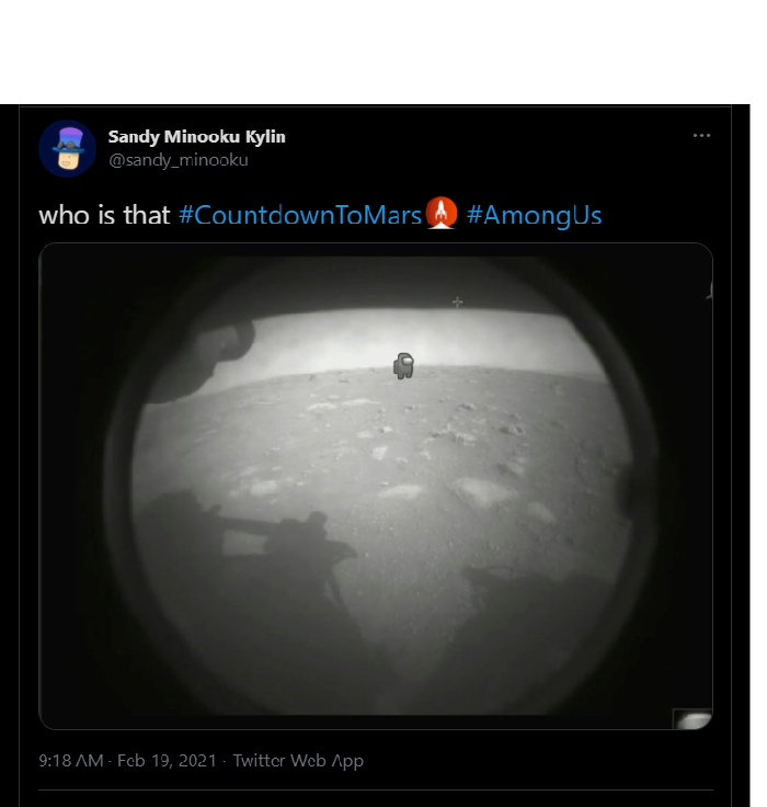 Imposter Among Us berhasil menumpang Perseverance untuk sampai ke Mars. Foto: Screenshot/Twitter