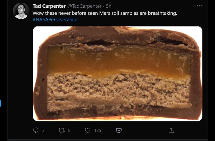 Hmm apa tanah permukaan Mars seenak cokelat ini ya? Foto: Screenshot/Twitter