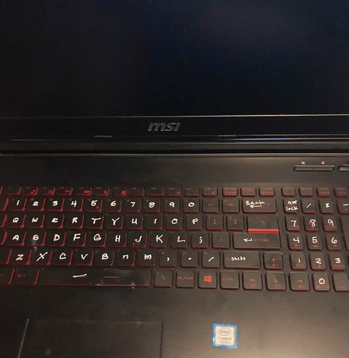 Backlight pada keyboard-nya tidak sengaja dimatikan. Kemudian si pengguna menggambar huruf dan angka pada keyboard agar kelihatan. Ya ampun... Foto:Β silaxsΒ via pleated-jeans.com