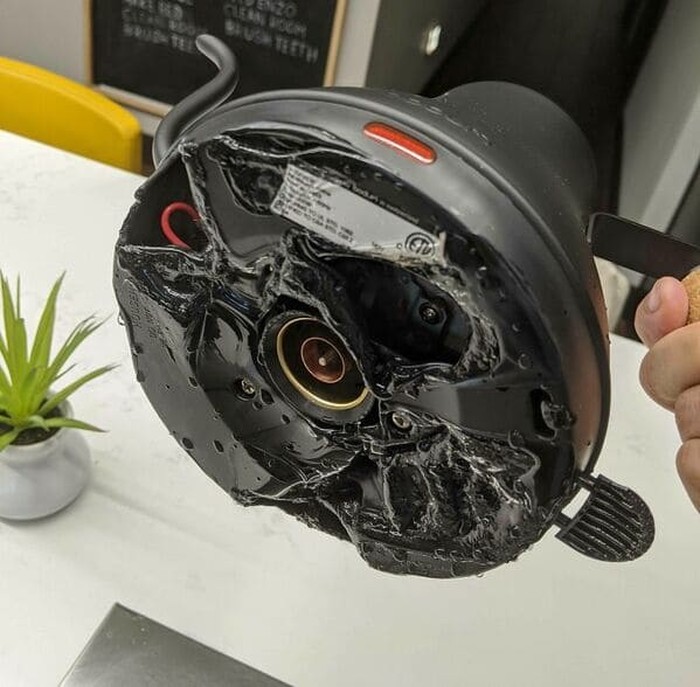 Maksud hati beralih menggunakan teko listrik. Tapi tekonya dipanaskan di atas kompor, ya begini jadinya. Foto:Β notsewfast_Β via pleated-jeans.com
