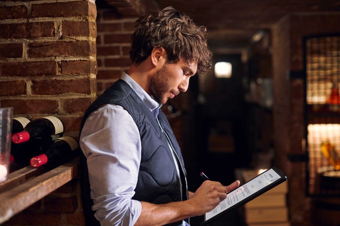 ThinkPad X1 Fold didirikan dengan bantuan kickstand di bagian belakang, kemudian dikombinasikan keyboard eksternal yang terhubung lewat Bluetooth. Foto: dok. Lenovo