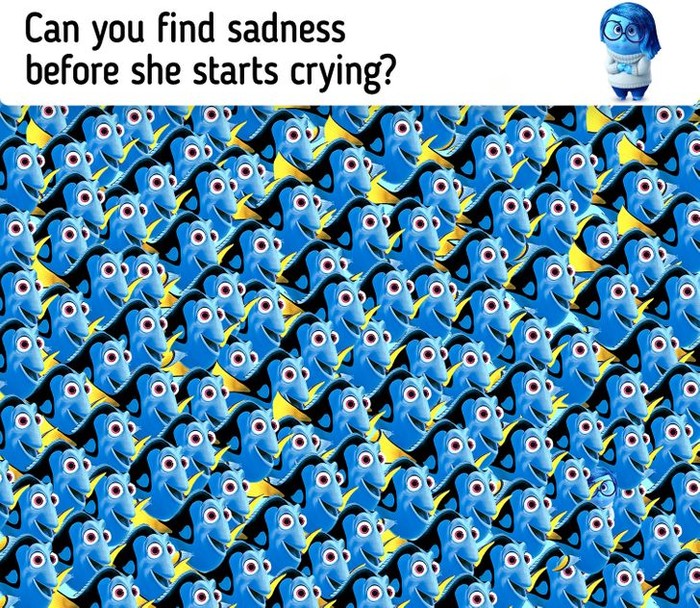Perhatikan seksama untuk mencari si Sadness di antara ikan Dory ini.Β Foto: Brightside