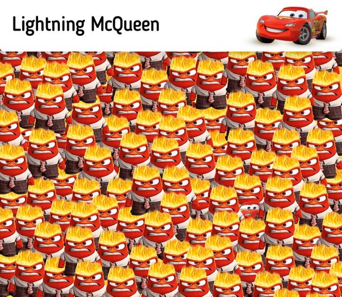 Bisa kamu temukan di mana mobil McQueen di antara karakter Anger Inside Out? Foto: Brightside