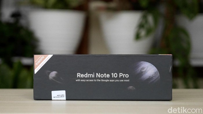 Dibanding edisi biasa yang boksnya berwarna putih, Redmi Note 10 Pro edisi MFF 2021 ini punya boks berwarna gelap, campuran hitam dan biru. Lengkap dengan gambar astronaut. Foto: detikINET/Anggoro Suryo Jati