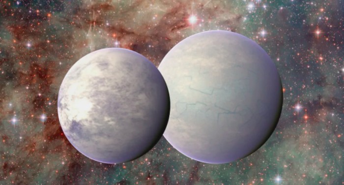 M-dwarf dan Brown dwarf. Di sini kita melihat konsepsi seniman tentang planet di sekitar bintang yang lebih dingin dari Matahari kita M-dwarf dan Brown dwarf. Agar sebuah planet dapat mempertahankan kehidupan, ia harus mampu membawa air di bawah titik didih namun tetap di atas titik beku. Selain itu, planet harus memiliki cukup udara, tetapi tidak terlalu banyak. Keseimbangan yang rumit ini bergantung pada kedekatan bintang ke planet. Foto: NASA