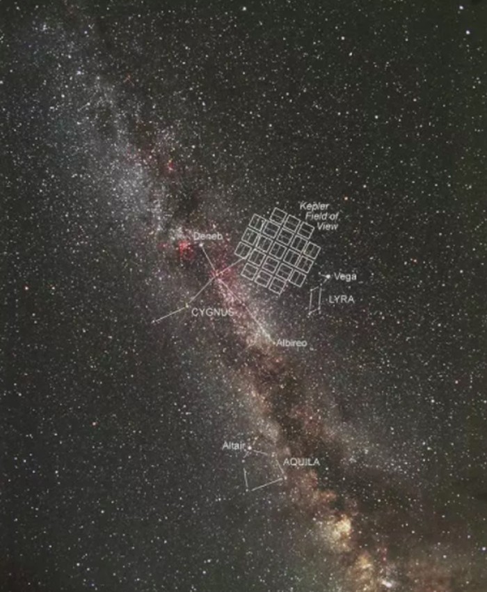 Cygnus dan Lyra. Karena kendala misi, Kepler tidak bisa menyapu setiap sudut langit sehingga difokuskan pada satu wilayah besar yang mencakup konstelasi Cygnus dan Lyra. Wilayah Cygnus dan Lyra dipilih karena banyaknya bintang yang mirip dengan Matahari kita. Tujuan akhirnya adalah menemukan planet seperti Bumi. Foto: NASA