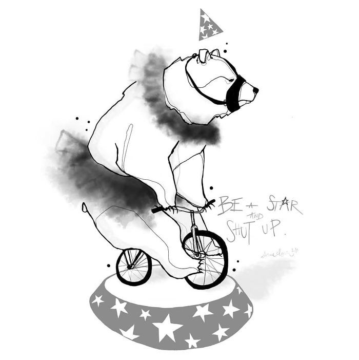 Mirisnya beruang yang dipaksa jadi badut manusia. (Foto: Boredpanda/dameclown)