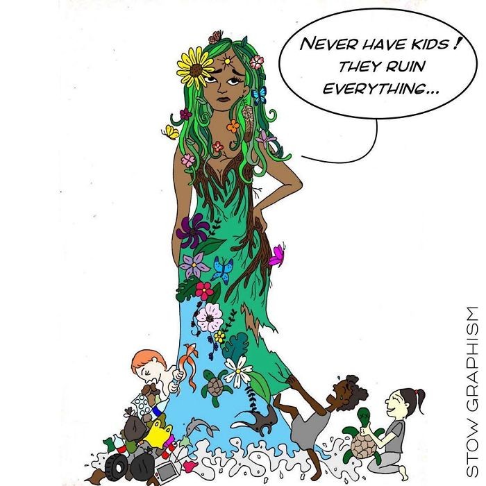 'Mother Earth' menggambarkan manusia seperti anak kecil yang merusak lingkungan. (Foto: Boredpanda/@stowgraphism)