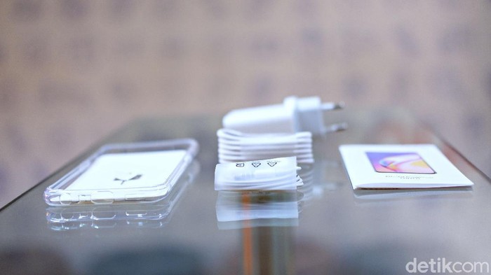 Aksesori yang disertakan dalam paket penjualan sangat lengkap. Ada case transparan, SIM Card ijector, earphone, kabel data dan charger. Foto: Adi Fida Rahman/detikINET