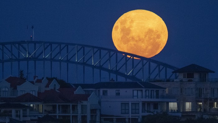 Supermoon terbit di Sydney Harbour Bridge, Australia. Foto: AP/Mark Baker