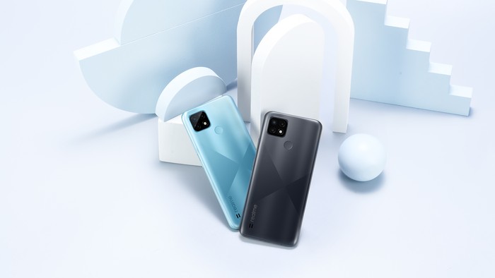 Realme C21: Di kelas bawah, ada Realme C21 memiliki panel LCD berukuran 6,5 inch dengan resolusi 1.600 x 720 pixel (HD+) dengan rasio 20:9 dan desain notch tetesan air. Notch ini menjadi tempat kamera depan 5 MP. Ponsel ini dilepas dengan harga Rp 1.699.000 untuk varian 3GB/32GB dengan harga khusus Rp 1.549.000 untuk flash sale. Untuk varian 4GB/64GB dibanderol Rp 1.999.000. Foto: dok. Realme