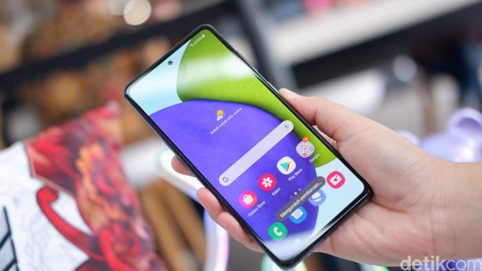 Galaxy A52: Galaxy A52 punya empat warna di antaranya, yakni varian biru, ungu dan hitam. Ketiganya punya spesifikasi yang sama dengan ditenagai Snapdragon 720G dan mengusung layar Super AMOLED 6,5 inch dengan resolusi Full HD+ dan refresh rate 90Hz. Harga Galaxy A52 di Indonesia Rp 4.999.000 (128 GB) dan Rp 5.399.000 (256 GB). Foto: Adi Fida Rahman/detikINET