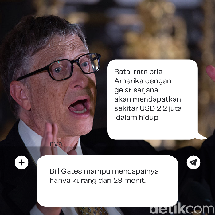 Rata-rata pria Amerika dengan gelar sarjana akan mendapatkan sekitar $ 2,2 juta dalam hidupnya. Gates membuatnya dalam lebih dari 28 menit. Foto: detikINET