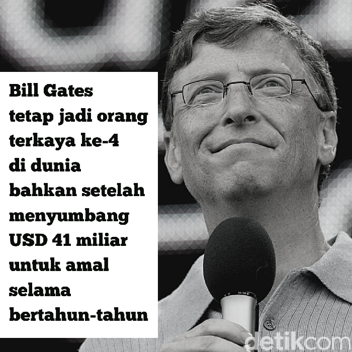 Gates tetap menjadi orang terkaya keempat di dunia bahkan setelah memberikan setidaknya USD 41 miliar untuk amal selama bertahun-tahun. Foto: detikINET