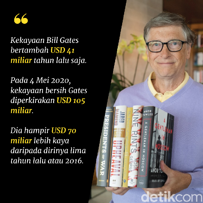 Dilansir dari Business Insider, Bill Gates telah menjadi lebih kaya USD 41 miliar atau Rp 591,9 triliun pada tahun lalu saja Foto: detikINET