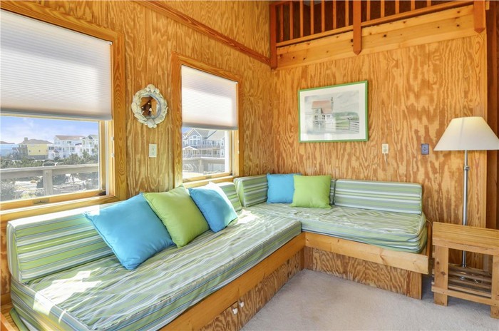 Sofa daybed di lantai atas untuk bersantai. Saat pacaran, Bill Gates dan Winblad memang baru meniti karir dan berusaha menjadi yang terbaik di jagat teknologi. Foto: dok. TruPlace Premium Property Visual