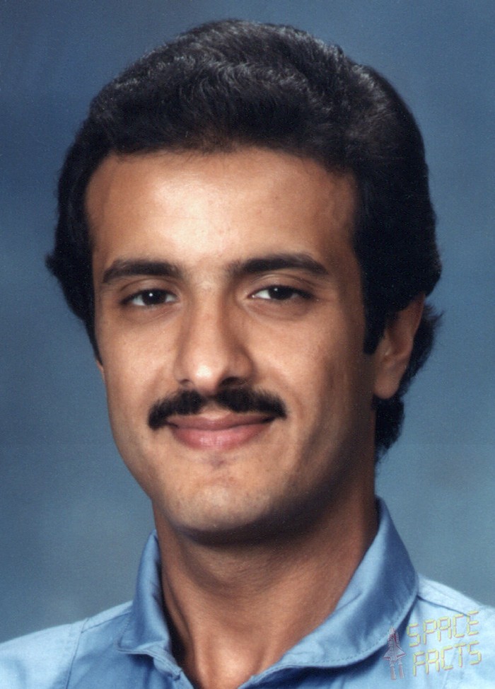 Sultan bin Salman Al Saud. Dari namanya sudah terungkap bahwa ia adalah anggota kerajaan Arab Saudi. Salman Al Saud adalah astronaut muslim, orang Arab, dan anggota kerjaan pertama yang meluncur ke antariksa pada 17 Juni 1985. Foto: spacefacts.de