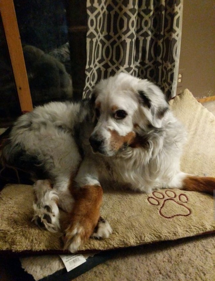 Seluruh bulu anjing ini vitiligo kecuali kaki kanannya. Foto: Brightside