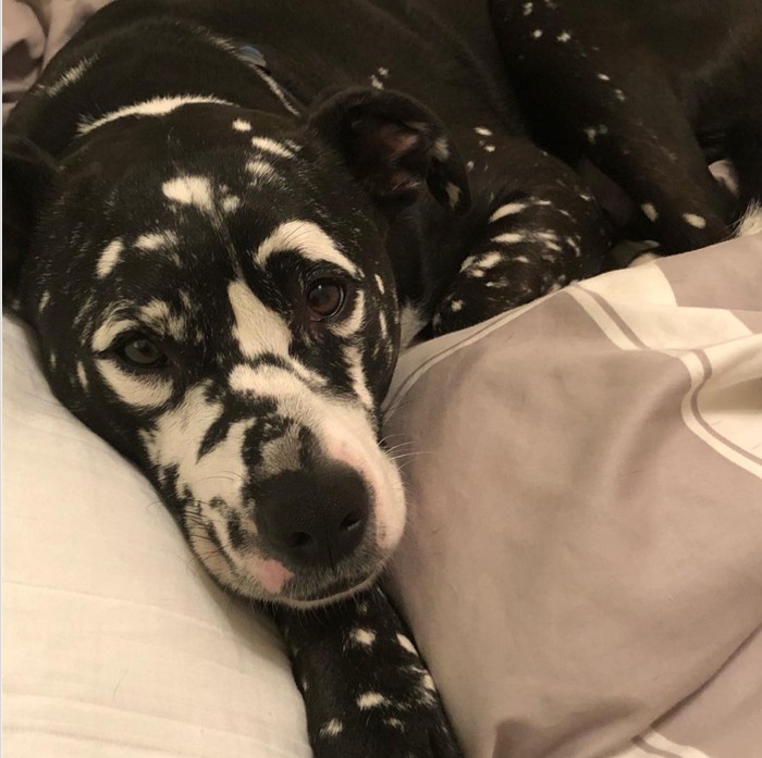 Kalau anjing ini mengalami vitiligo di wajahnya, tapi jadinya eksotis. Foto: Brightside