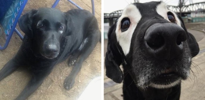 Anjing ini juga mengalami vitiligo separuh bulunya. Foto: Brightside
