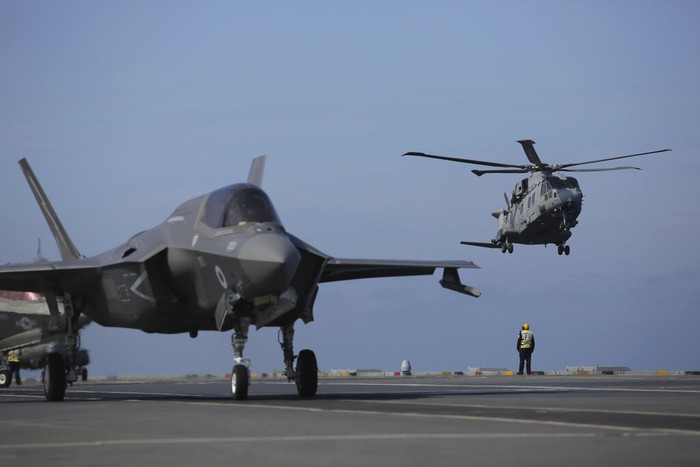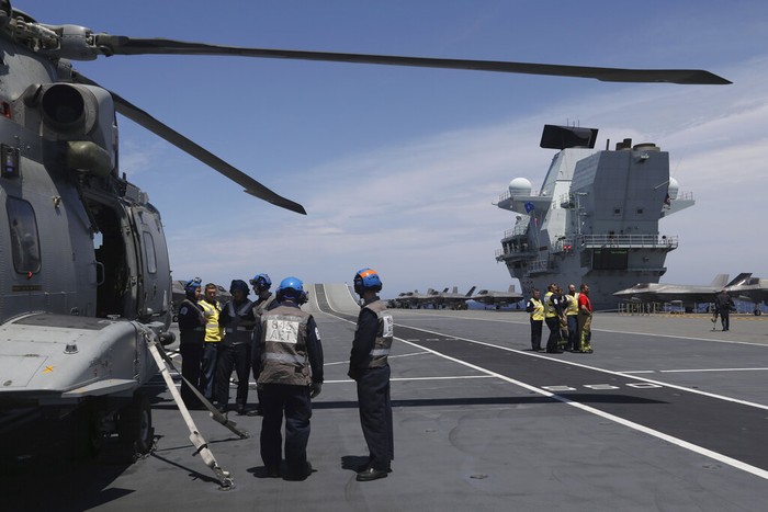 Selain jet tempur, HMS Queen Elizabeth juga mengangkut beberapa helikopter. Foto: Associated Press