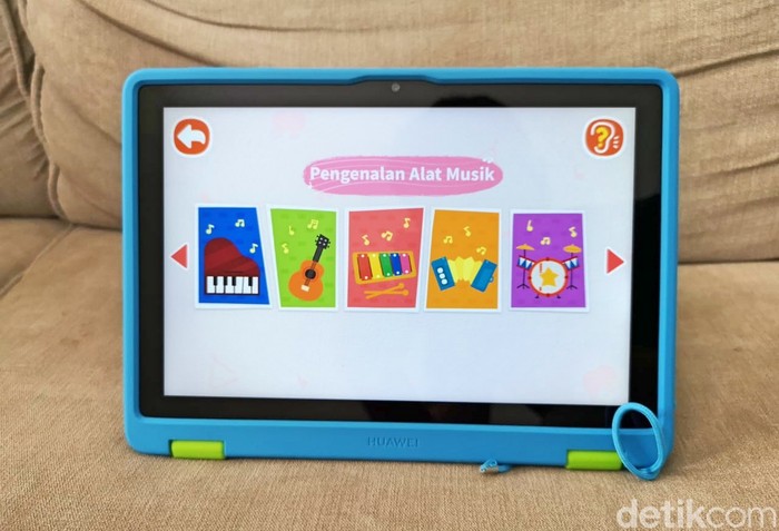 Anak-anak antara lain bisa mengases aplikasi BabyBus dan Azoomee yang sudah disediakan untuk mendukung proses belajar dan bermain anak. Ini misalnya untuk mengenal alat musik. Foto: Fino/detikcom