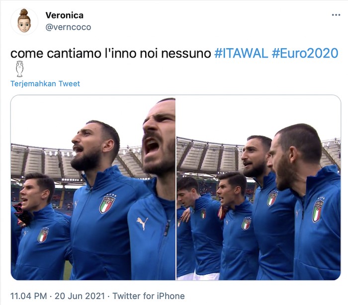 Semangat Gli Azzuri sudah terpancar saat menyanyikan lagu kebangsaan. Foto: Internet