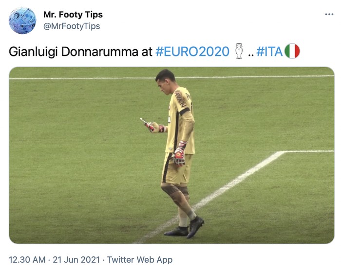 Saking tidak pernah kebobolan, ada meme Donnaruma bisa sambil main HP di lapangan. Foto: Internet