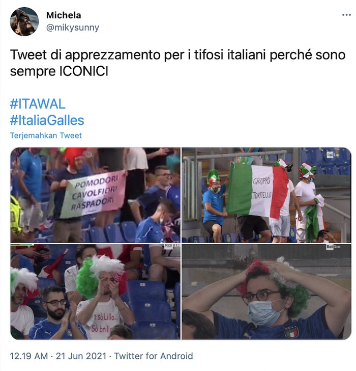 Walau masih dalam suasana pandemi, tifosi Italia tetap all out dukung timnas mereka. Foto: Internet