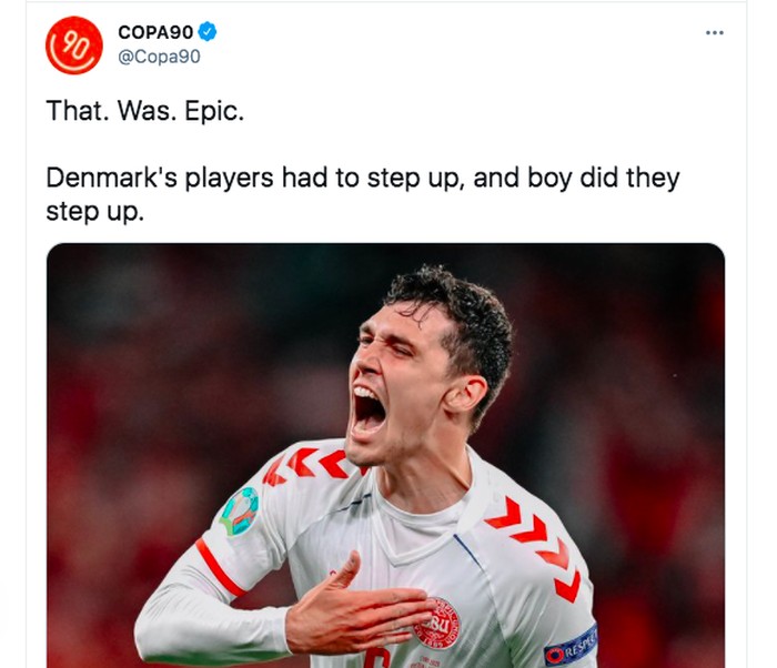 Sungguh malam yang luar biasa bagi Denmark. Foto: Twitter