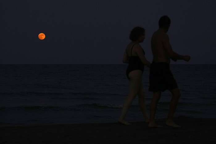 Strawberry full moon yang terlihat di wilayah Siprus. Tahun ini kita cukup beruntung bisa menyaksikan tiga supermoon. Supermoon pertama di 2021 terjadi pada bulan April, yang kedua di bulan Mei, dan suguhan pemandangan berikutnya hadir di bulan ini, tepatnya pada tanggal 24 Juni semalam. Foto: Associated Press