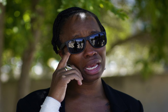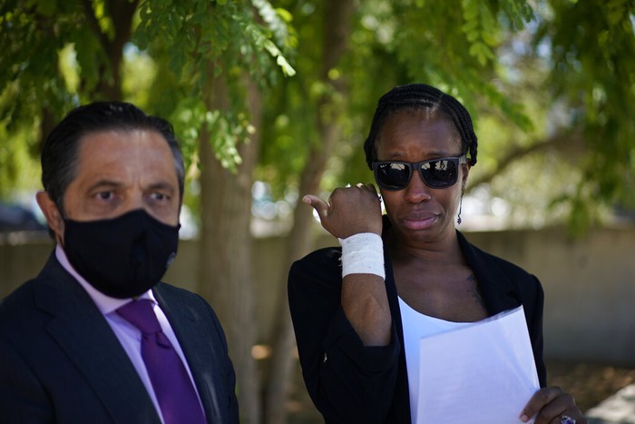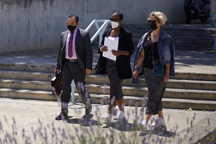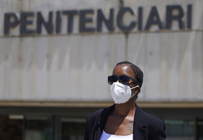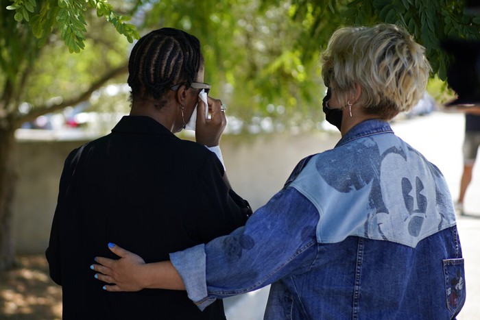Janice yang emosional ditenangkan oleh seorang wanita yang tak teridentifikasi. Foto: AP/Joan Mateu