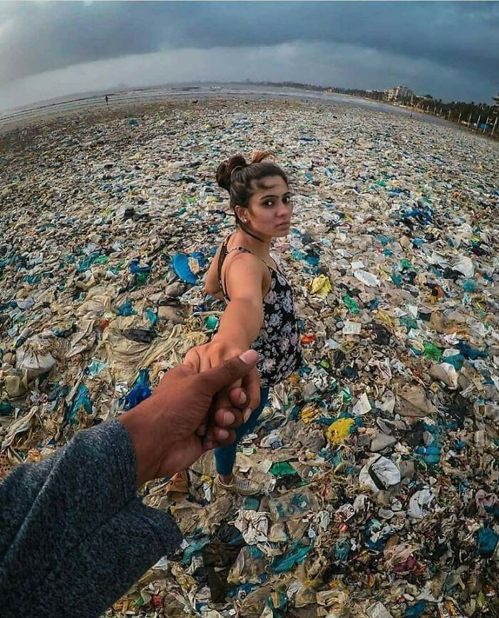 Potret romantis di tepi laut yang penuh dengan sampah. Foto: Boredpanda