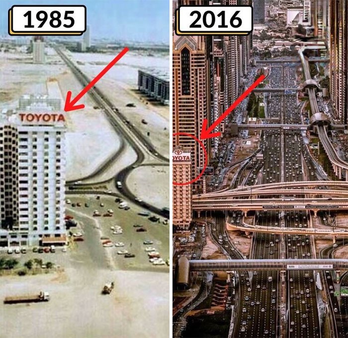 Sebelum dan setelah gurun pasir berubah menjadi perumahan warga yang padat. Foto: Boredpanda