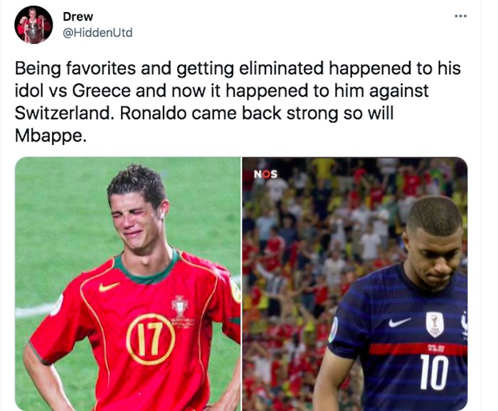 Mbappe diharapkan dapat mencontoh idolanya Cristiano Ronaldo yang dulu saat muda juga tersingkir tapi mampu bangkit. Foto: Twitter