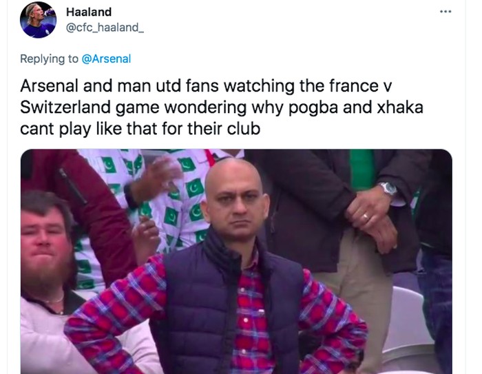 Fans Manchester United dan Arsenal gregetan karena Pogba dan Xhaka tidak tampil sama trengginas jika membela klub. Foto: Twitter