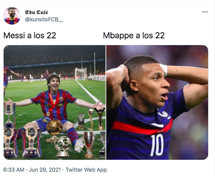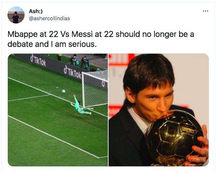 Mbappe pun dianggap tidak bisa menyaingi Messi yang di umurnya sudah menjadi pemain terbaik dunia. Foto: Twitter