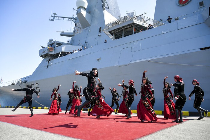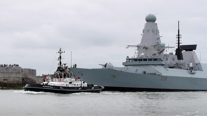 Beberapa hari lalu, HMS Defender dituduh Rusia melanggar batas negara di Laut Hutam. Kementerian Pertahanan Rusia menyatakan sebuah kapal patroli perbatasan Rusia dan sebuah pesawat pengebom Su-24 telah melepaskan tembakan peringatan. Foto: Royal Navy
