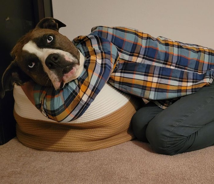 Anjing berbadan manusia. Foto: dok reddit/confusing_perspective