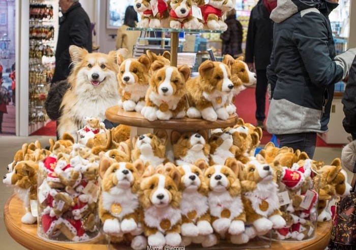 Gemasnya di antara boneka-boneka anjing adaΒ yang asli. Foto: Brightside