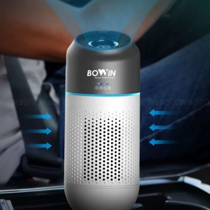 Bowin Air Purifier Oxy Fresh Mini dilengkapi dengan filter dan sensor yang mendeteksi kualitas udara dan sensor gestur tangan. Bentuknya yang portable bisa digunakan di mobil, harganya Rp 700 ribu. Foto: dok Blibli